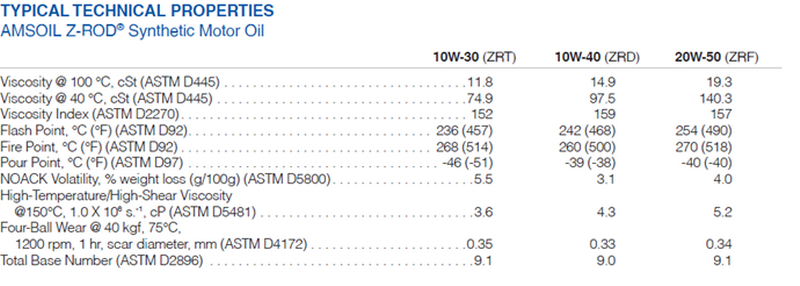 Use Z-ROD Synthetic Motor Oil in engines requiring either 10W-30, 10W-40 or 20W-50 motor oil. Z-ROD Synthetic Motor Oil meets API SL and earlier specifications, allowing for increased levels of anti-wear additives. ZDDP levels in Z-ROD Synthetic Motor Oil exceed the limits of API SM and newer specifications.